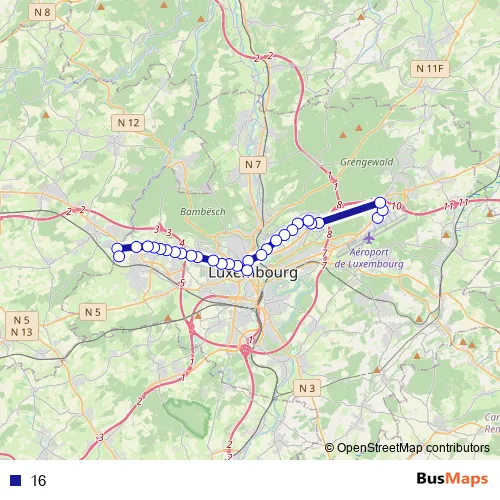 See why over 2 million users trust and consider busmaps.com as the best public transport website. busmaps gives you Luxembourg Buses suggested routes, real-time bus tracker, line route maps in Luxembourg, and helps to find the closest 16 bus stops near you. No internet available? Download an offline PDF map and bus schedule for the 16 bus to take on your trip.