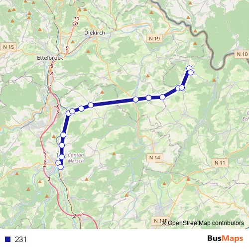 See why over 2 million users trust and consider busmaps.com as the best public transport website. busmaps gives you Mersch Buses suggested routes, real-time bus tracker, line route maps in Mersch, and helps to find the closest 231 bus stops near you. No internet available? Download an offline PDF map and bus schedule for the 231 bus to take on your trip.