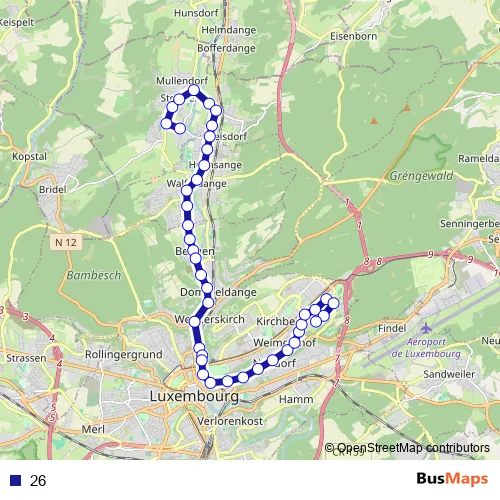 See why over 2 million users trust and consider busmaps.com as the best public transport website. busmaps gives you Luxembourg Buses suggested routes, real-time bus tracker, line route maps in Luxembourg, and helps to find the closest 26 bus stops near you. No internet available? Download an offline PDF map and bus schedule for the 26 bus to take on your trip.