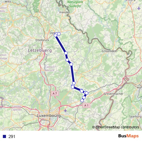 See why over 2 million users trust and consider busmaps.com as the best public transport website. busmaps gives you Junglinster Buses suggested routes, real-time bus tracker, line route maps in Junglinster, and helps to find the closest 291 bus stops near you. No internet available? Download an offline PDF map and bus schedule for the 291 bus to take on your trip.