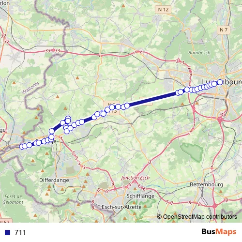 See why over 2 million users trust and consider busmaps.com as the best public transport website. busmaps gives you Luxembourg Buses suggested routes, real-time bus tracker, line route maps in Luxembourg, and helps to find the closest 711 bus stops near you. No internet available? Download an offline PDF map and bus schedule for the 711 bus to take on your trip.