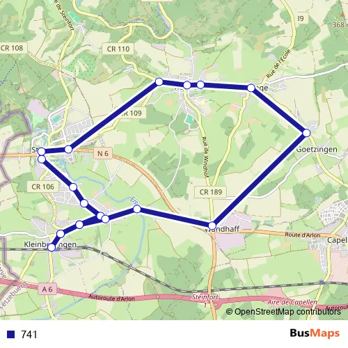 The first stop of the 741 bus route is Kleinbettingen, Gare routière and the last stop is Kleinbettingen, Gare routière. 741 is operational during everyday.