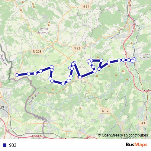 See why over 2 million users trust and consider busmaps.com as the best public transport website. busmaps gives you Mersch Buses suggested routes, real-time bus tracker, line route maps in Mersch, and helps to find the closest 933 bus stops near you. No internet available? Download an offline PDF map and bus schedule for the 933 bus to take on your trip.