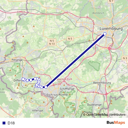 See why over 2 million users trust and consider busmaps.com as the best public transport website. busmaps gives you Esch-sur-Alzette Buses suggested routes, real-time bus tracker, line route maps in Esch-sur-Alzette, and helps to find the closest D18 bus stops near you. No internet available? Download an offline PDF map and bus schedule for the D18 bus to take on your trip.