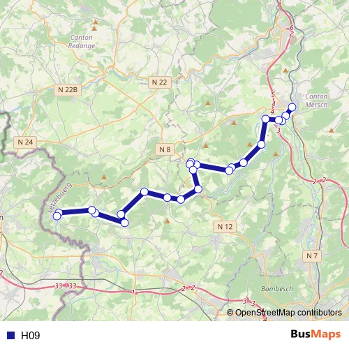 See why over 2 million users trust and consider busmaps.com as the best public transport website. busmaps gives you Mersch Buses suggested routes, real-time bus tracker, line route maps in Mersch, and helps to find the closest H09 bus stops near you. No internet available? Download an offline PDF map and bus schedule for the H09 bus to take on your trip.