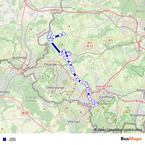 See why over 2 million users trust and consider busmaps.com as the best public transport website. busmaps gives you Esch-sur-Alzette Buses suggested routes, real-time bus tracker, line route maps in Esch-sur-Alzette, and helps to find the closest J05 bus stops near you. No internet available? Download an offline PDF map and bus schedule for the J05 bus to take on your trip.