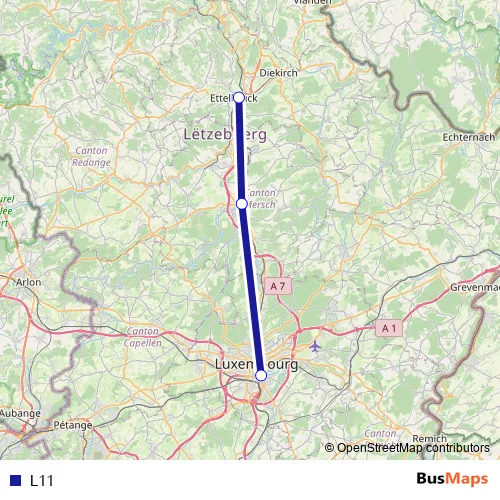 The first stop of the L11 bus route is Luxembourg, Gare Rocade and the last stop is Ettelbruck, Gare routière. L11 is operational during everyday.