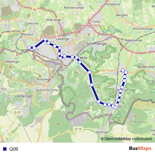 See why over 2 million users trust and consider busmaps.com as the best public transport website. busmaps gives you Esch-sur-Alzette Buses suggested routes, real-time bus tracker, line route maps in Esch-sur-Alzette, and helps to find the closest Q09 bus stops near you. No internet available? Download an offline PDF map and bus schedule for the Q09 bus to take on your trip.