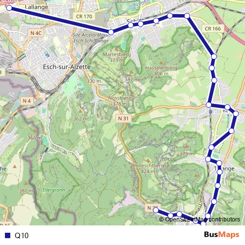 The first stop of the Q10 bus route is Esch-sur-Alzette, Lycée Guillaume Kroll and the last stop is Rumelange, Rembour. Q10 is operational during on weekdays.