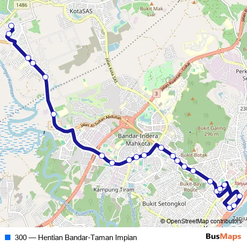The first stop of the 300 bus route is (M) Taman Impian and the last stop is (M) Hentian Bandar. 300 (Hentian Bandar-Taman Impian) is operational during everyday.