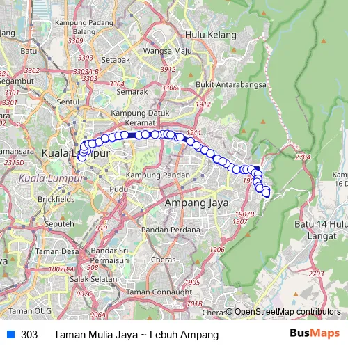 See why over 2 million users trust and consider busmaps.com as the best public transport website. busmaps gives you Kuala Lumpur Buses suggested routes, real-time bus tracker, line route maps in Kuala Lumpur, and helps to find the closest 303 bus stops near you. No internet available? Download an offline PDF map and bus schedule for the 303 bus to take on your trip.