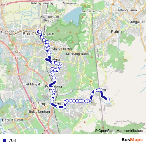The first stop of the 708 bus route is Hub Jalan Air Puteh and the last stop is (M1) The Summit. 708 is operational during everyday.