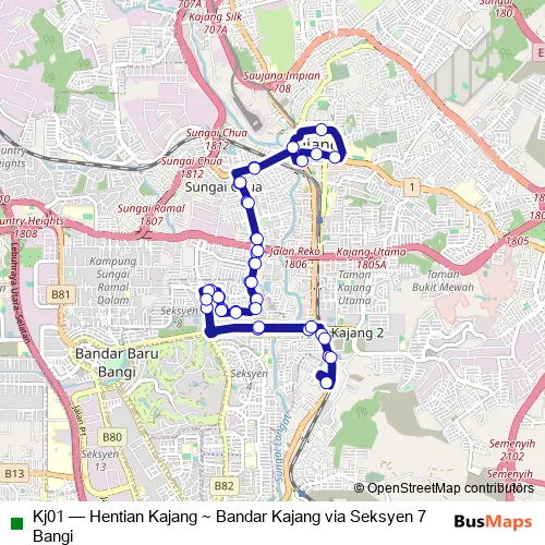 Bus Kj01 - Hentian Kajang ~ Bandar Kajang via Seksyen 7 Bangi in Kuala Lumpur: Stops & Timetable
