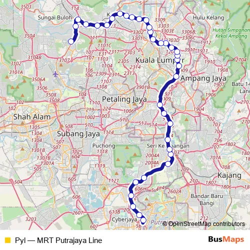 See why over 2 million users trust and consider busmaps.com as the best public transport website. busmaps gives you Kuala Lumpur Metro Lines suggested routes, real-time bus tracker, line route maps in Kuala Lumpur, and helps to find the closest Pyl metro stops near you. No internet available? Download an offline PDF map and bus schedule for the Pyl metro to take on your trip.