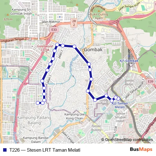 See why over 2 million users trust and consider busmaps.com as the best public transport website. busmaps gives you Kuala Lumpur Buses suggested routes, real-time bus tracker, line route maps in Kuala Lumpur, and helps to find the closest T226 bus stops near you. No internet available? Download an offline PDF map and bus schedule for the T226 bus to take on your trip.