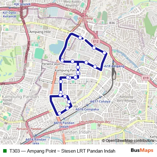 Bus T303 - Ampang Point ~ Stesen LRT Pandan Indah in Kuala Lumpur: Stops & Timetable