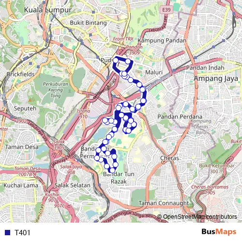 See why over 2 million users trust and consider busmaps.com as the best public transport website. busmaps gives you Kuala Lumpur Buses suggested routes, real-time bus tracker, line route maps in Kuala Lumpur, and helps to find the closest T401 bus stops near you. No internet available? Download an offline PDF map and bus schedule for the T401 bus to take on your trip.
