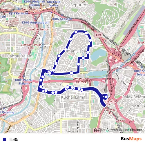 The first stop of the T585 bus route is MRT Kuchai and the last stop is MRT Kuchai. T585 is operational during everyday.