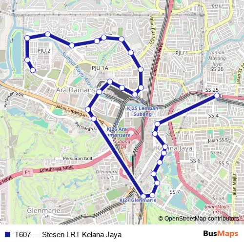 See why over 2 million users trust and consider busmaps.com as the best public transport website. busmaps gives you Petaling Jaya Buses suggested routes, real-time bus tracker, line route maps in Petaling Jaya, and helps to find the closest T607 bus stops near you. No internet available? Download an offline PDF map and bus schedule for the T607 bus to take on your trip.
