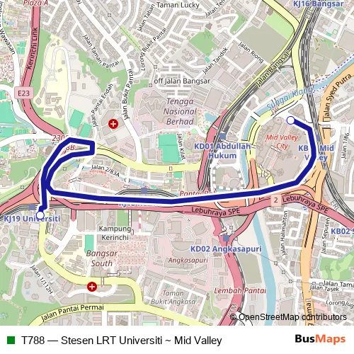 Click here to view the nearest T788 - Stesen LRT Universiti ~ Mid Valley bus stop.
