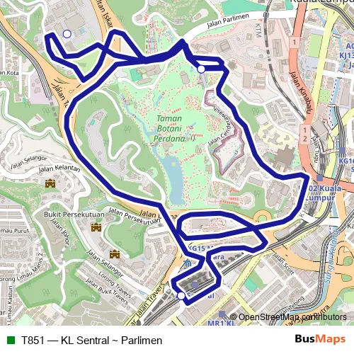 The first stop of the T851 bus route is KL Sentral and the last stop is KL Sentral. T851 (KL Sentral ~ Parlimen) is operational during on weekdays.