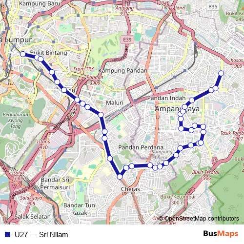 See why over 2 million users trust and consider busmaps.com as the best public transport website. busmaps gives you Kuala Lumpur Buses suggested routes, real-time bus tracker, line route maps in Kuala Lumpur, and helps to find the closest U27 bus stops near you. No internet available? Download an offline PDF map and bus schedule for the U27 bus to take on your trip.