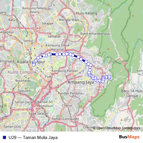 Bus U29 - Taman Mulia Jaya Schedule in Kuala Lumpur