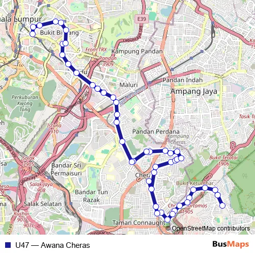 See why over 2 million users trust and consider busmaps.com as the best public transport website. busmaps gives you Kuala Lumpur Buses suggested routes, real-time bus tracker, line route maps in Kuala Lumpur, and helps to find the closest U47 bus stops near you. No internet available? Download an offline PDF map and bus schedule for the U47 bus to take on your trip.