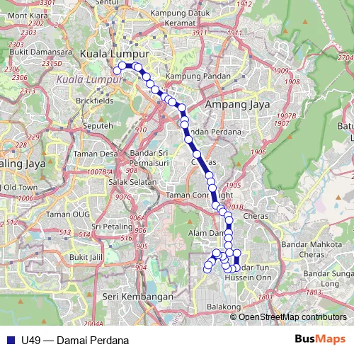 See why over 2 million users trust and consider busmaps.com as the best public transport website. busmaps gives you Kuala Lumpur Buses suggested routes, real-time bus tracker, line route maps in Kuala Lumpur, and helps to find the closest U49 bus stops near you. No internet available? Download an offline PDF map and bus schedule for the U49 bus to take on your trip.