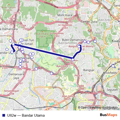 The first stop of the U82w bus route is KL Sentral, Jalan Stesen Sentral 3 and the last stop is Hab Bas Bandar Utama, Central Park Avenue. U82w (Bandar Utama) is operational during everyday.