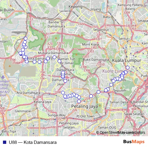See why over 2 million users trust and consider busmaps.com as the best public transport website. busmaps gives you Kuala Lumpur Buses suggested routes, real-time bus tracker, line route maps in Kuala Lumpur, and helps to find the closest U88 bus stops near you. No internet available? Download an offline PDF map and bus schedule for the U88 bus to take on your trip.