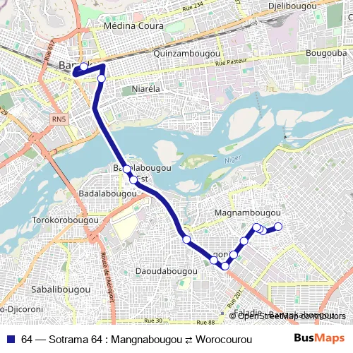 Click here to view the nearest 64 - Sotrama 64 : Mangnabougou ⇄ Worocourou bus stop.