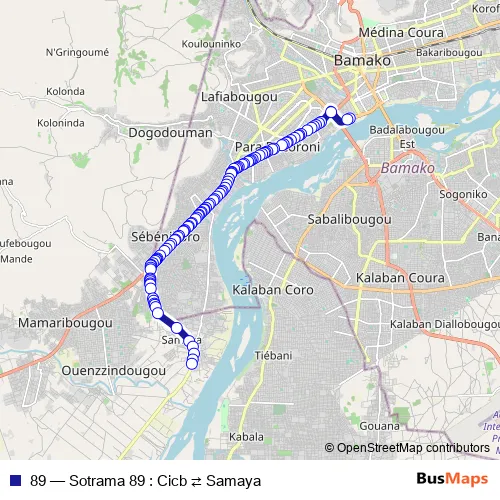 See why over 2 million users trust and consider busmaps.com as the best public transport website. busmaps gives you Bamako Buses suggested routes, real-time bus tracker, line route maps in Bamako, and helps to find the closest 89 bus stops near you. No internet available? Download an offline PDF map and bus schedule for the 89 bus to take on your trip.