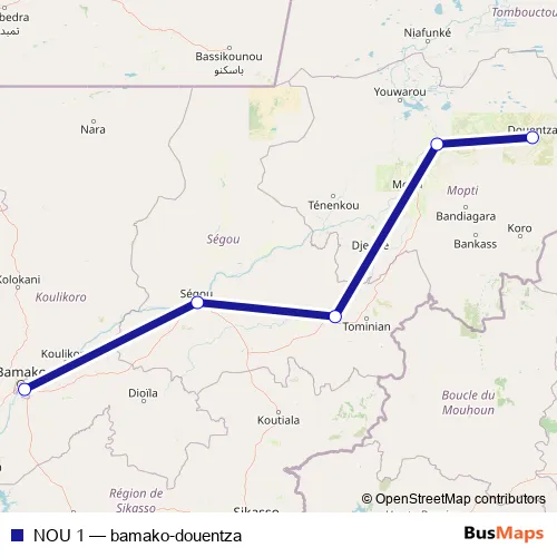 Click here to view the nearest NOU 1 - bamako-douentza bus stop.