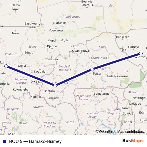 Bus NOU 9 - Bamako-Niamey: Full Schedule in Bobo-Dioulasso