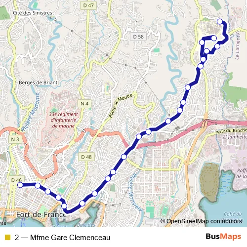 Bus 2 - Mfme Gare Clemenceau in Fort-de-France: Stops & Timetable