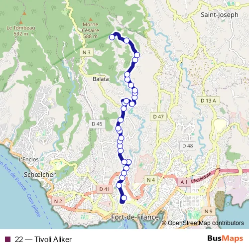 See why over 2 million users trust and consider busmaps.com as the best public transport website. busmaps gives you Fort-de-France Buses suggested routes, real-time bus tracker, line route maps in Fort-de-France, and helps to find the closest 22 bus stops near you. No internet available? Download an offline PDF map and bus schedule for the 22 bus to take on your trip.