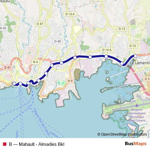 See why over 2 million users trust and consider busmaps.com as the best public transport website. busmaps gives you Fort-de-France Buses suggested routes, real-time bus tracker, line route maps in Fort-de-France, and helps to find the closest B bus stops near you. No internet available? Download an offline PDF map and bus schedule for the B bus to take on your trip.
