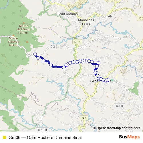 The first stop of the Gm06 bus route is Intersection RD1-RD2 LE Christ and the last stop is Rue de la liberté. Gm06 (Gare Routiere Dumaine Sinai) is operational during everyday.