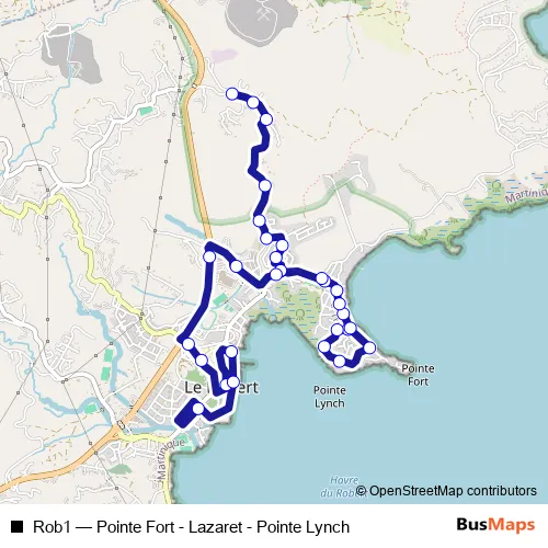 See why over 2 million users trust and consider busmaps.com as the best public transport website. busmaps gives you Fort-de-France Buses suggested routes, real-time bus tracker, line route maps in Fort-de-France, and helps to find the closest Rob1 bus stops near you. No internet available? Download an offline PDF map and bus schedule for the Rob1 bus to take on your trip.