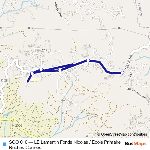 Bus SCO 010 - LE Lamentin Fonds Nicolas / Ecole Primaire Roches Carrees in Fort-de-France: Stops & Timetable