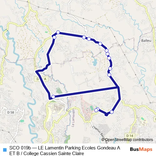 The first stop of the SCO 019b bus route is Etab: Fort-De-France: College Cassien St-Clair and the last stop is Lamentin : Ecole De Gondeau. SCO 019b (LE Lamentin Parking Ecoles Gondeau A ET B / College Cassien Sainte Claire) is operational during on weekdays.