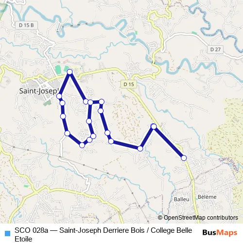 The first stop of the SCO 028a bus route is School: St Joseph: College Belle Etoile and the last stop is Saint-Joseph : Derriere Bois. SCO 028a (Saint-Joseph Derriere Bois / College Belle Etoile) is operational during on weekdays.