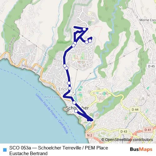 Click here to view the nearest SCO 053a - Schoelcher Terreville / PEM Place Eustache Bertrand bus stop.