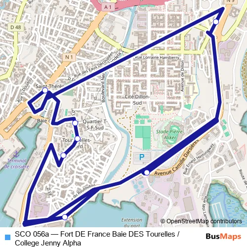 Click here to view the nearest SCO 056a - Fort DE France Baie DES Tourelles / College Jenny Alpha bus stop.