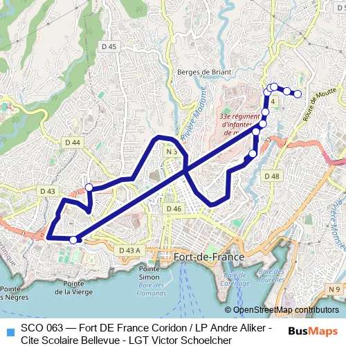 Click here to view the nearest SCO 063 - Fort DE France Coridon / LP Andre Aliker - Cite Scolaire Bellevue - LGT Victor Schoelcher bus stop.