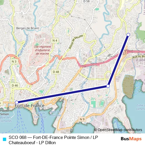 Bus SCO 068 - Fort-DE-France Pointe Simon / LP Chateauboeuf - LP Dillon: Full Schedule in Fort-de-France