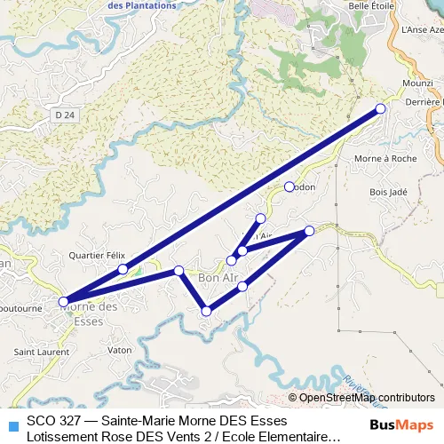 Click here to view the nearest SCO 327 - Sainte-Marie Morne DES Esses Lotissement Rose DES Vents 2 / Ecole Elementaire Felix Lorne - Ecole Elementaire Francois Grosy bus stop.