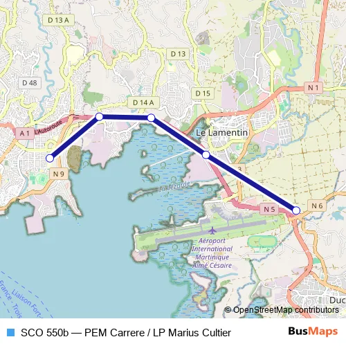See why over 2 million users trust and consider busmaps.com as the best public transport website. busmaps gives you Fort-de-France Buses suggested routes, real-time bus tracker, line route maps in Fort-de-France, and helps to find the closest SCO 550b bus stops near you. No internet available? Download an offline PDF map and bus schedule for the SCO 550b bus to take on your trip.