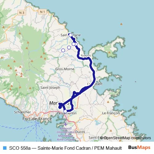 See why over 2 million users trust and consider busmaps.com as the best public transport website. busmaps gives you Fort-de-France Buses suggested routes, real-time bus tracker, line route maps in Fort-de-France, and helps to find the closest SCO 558a bus stops near you. No internet available? Download an offline PDF map and bus schedule for the SCO 558a bus to take on your trip.